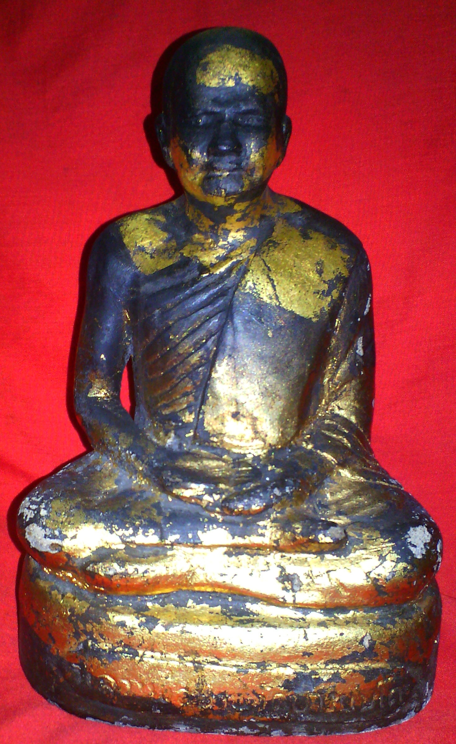 แต่พระบูชาของท่านที่สร้างใว้ตอนที่ท่านยังอยู่นั้นไม่ค่อยจะพบเห็นกันเลยอย่างองค์นี้ที่เป็นเนื้อผงผสมดินและมีอุดผงของท่านอีกด้วยนับว่าหาชมยากมากคับแล้วยังเป็นพิมพ์นั่งขัดสมาธิแบบนี้ไม่มีไห้เห็นกันเลยส่วนมากจะเป็นนั่งแบบมารวิชัยคือมือนึงวางบนตักและอีกมือวางที่หัวเข่าคับองค์นี้อายุถึงท่านแน่นอนและเนื้อหาที่แก่กรวดทรายเป็นเอกลักษ์ของท่านมีลงรักปิดทองใว้สวยงามจับตายิ่งนักคับทั้งเนื้อหาผงอุดครบสูตรคับแบบนี้