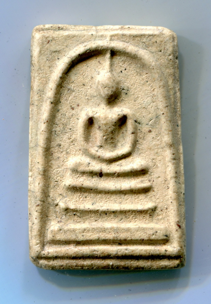 ซุ้มหนาแบบหวายผ่าซีก พื้นผิวภายในซุ้มต่ำกว่าภายนอกซุ้ม ซอกแขนซ้ายเว้าลึกกว่าด้านขวา พระบาทซ้ายนูน ฐานล่างสุดยุบเล็กน้อย สภาพโดยรวม คมชัดลึก จัดว่าเป็นพระแท้ที่ดูง่ายอีกองค์หนึ่งของวงการ
