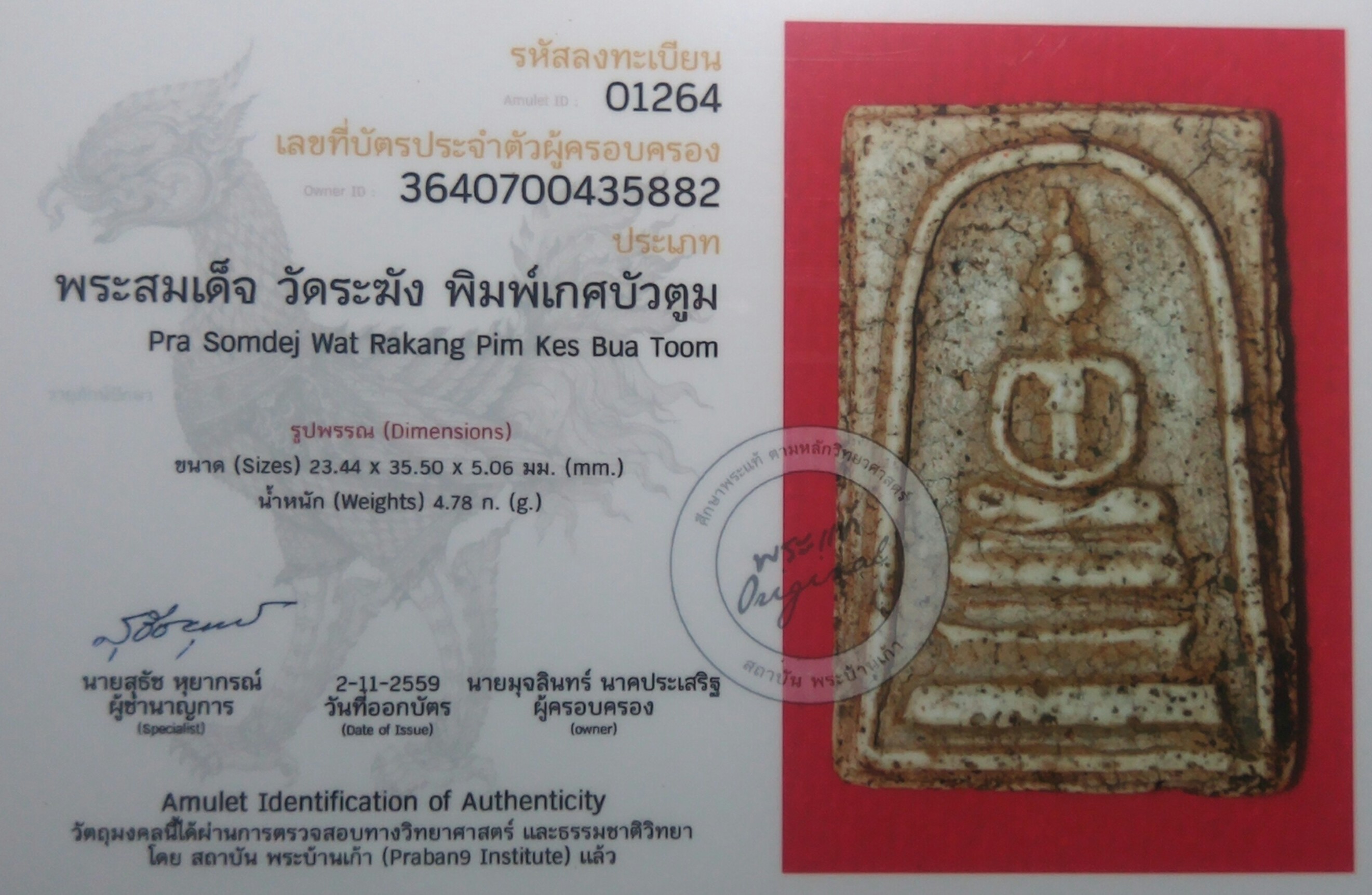 พระสมเด็จวัดระฆัง พิมพ์เกศบัวตูม รหัสพระเครื่อง : 3514 ราคา โทรสอบถาม -. เบอร์ติดต่อ 0925389626 0935498751 ติดต่อ คุณมุจลินทร์