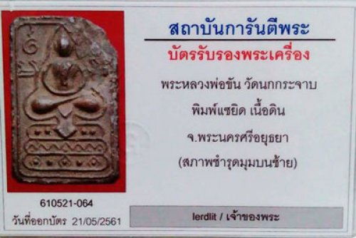 หลวงพ่อขัน วัดนกกระจาบ พระพิมพ์แซยิด ปี 2470 สภาพชำรุดมุมขวาบน
