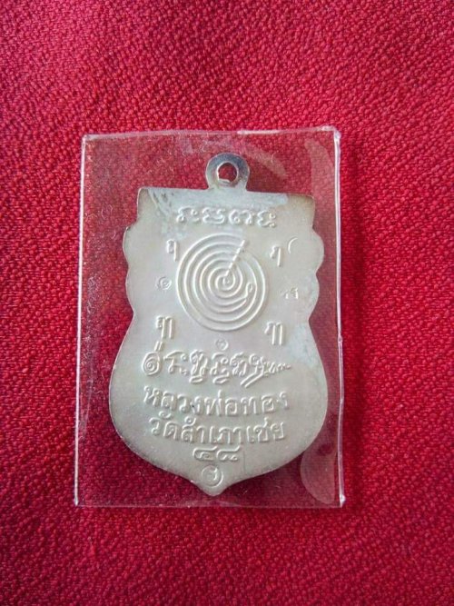 เหรียญพิมพ์เสมา หัวโต หลวงพ่อทอง วัดสำเภาเชย ปัตตานี รุ่น สุวรรณมงคล ปี 2548 เนื้อเงินลงยาสีลายธงชาติ พิเศษตอกโค๊ตแมลง ปอเรียกทรัพย์ เป็นเหรียญแจกกรรมการ พร้อมกล่องเดิมๆๆ
