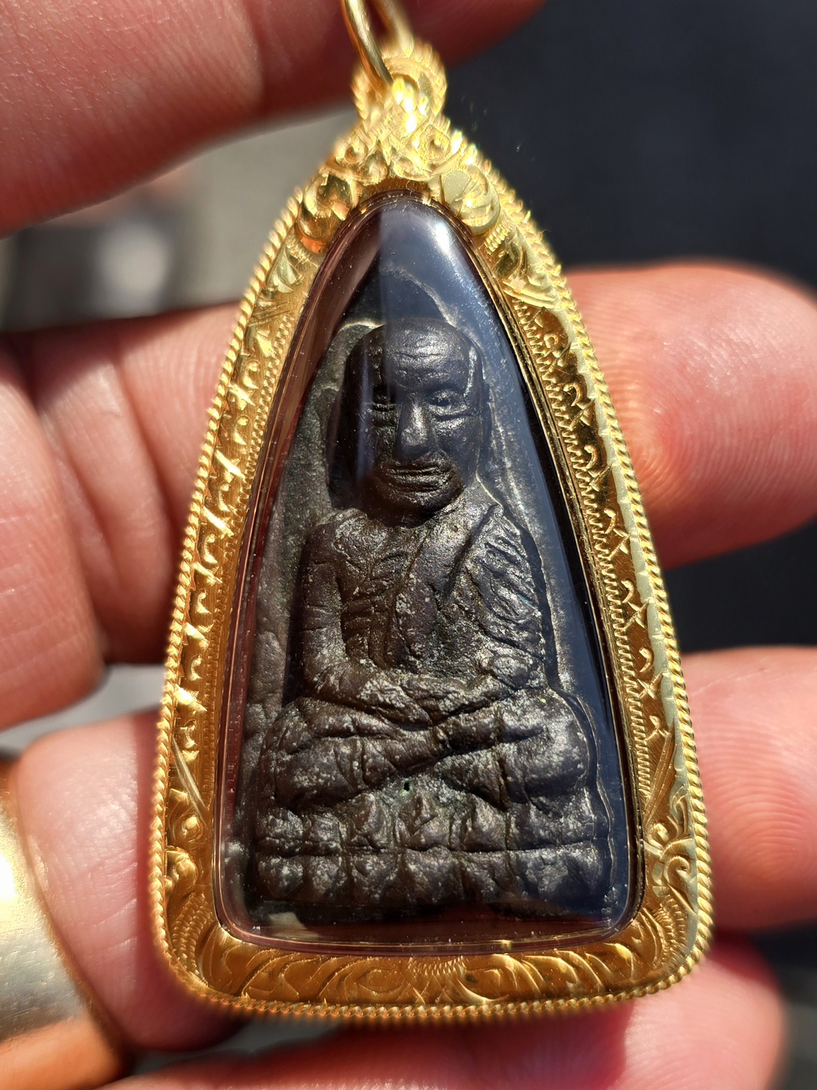 เตารีดหลวงพ่อทวด ปี2505 เนื้อแร่ พิมพ์ใหญ่A วัดช้างให้ พร้อมเลี่ยมทองหนา
